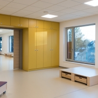 Im Ortsteil Schildow der Gemeinde Mühlenbecker Land entstand eine neue Kita für 100 Kinder. Im Rahmen eines Wettbewerbs wurde der Zuschlag erteilt. Mit dem Bau wurde in 2016 begonnen. Der Neubau entsteht gegenüber der alten Schule, die als Hort genutzt wird. Der Baukörper bildet einen Vorplatz zur Straße, schafft damit Platz für die ankommenden Kinder und Abstand zum Verkehr. Großzügige Verglasungen ziehen schon von weitem den Blick auf das öffentliche Gebäude. Im vorderen Bereich entsteht ein Mehrzweckraum, der auch anderen Nutzungen, außerhalb der Betriebszeit der Kita, zur Verfügung steht.