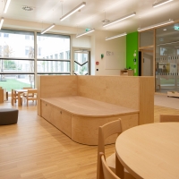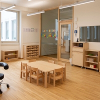 Dies ist der vierte TIMI’S MINI MINT Kindergarten für kleine Forscher:innen und Entdecker:innen, den die Kinderfreunde als betriebsnahen Kindergarten für die ÖBB führen. Aufgrund der Nähe zum Unternehmen haben alle vier einen MINT Schwerpunkt (Mathematik, Informatik, Naturwissenschaften, Technik). Das Raum- und Einrichtungskonzept des Hauses berücksichtigt dies mit Wandtafeln zu MINT-Themen, Stauraum für MINT-Materialien, und einem großen multifunktionalen Raum, zum Forschen und Entdecken im Rahmen der Science-Pool Einheiten. Dieser Raum dient auch als Bistro, dadurch können in den Gruppenräumen viele Tische eingespart werden. So wird Platz für vielfältige Aktivitäten geschaffen. Vielfältig nutzbare Einrichtungsgegenstände tragen ebenso zur optimalen Raumnutzung bei. Die ruhige Farbwahl in allen Räumlichkeiten sorgt für ein entspanntes Klima. Die Zusammenarbeit mit der Firma Resch war durch deren Zuverlässigkeit, Qualität und das Eingehen auf individuelle Wünsche ausgezeichnet.