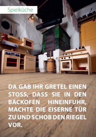6DA GAB IHR GRETEL EINEN STOSS, DASS SIE IN DEN BACKOFEN HINEINFUHR, MACHTE DIE EISERNE T%u00dcR ZU UND SCHOB DEN RIEGEL VOR.Spielk%u00fcche
