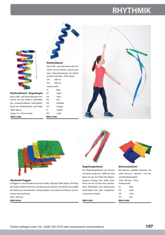 Einfach anfragen unter: Tel.: +43(0) 7281 6279 oder massiv@resch-schulmoebel.at107RhythmikbandNach DTB- und internationaler Vorschrift. 50 mm breites, auswechselbares Satinseidenband mit Glasfaserstab und Feder. 100% Nylon.BW512340200400200 cm400 cmFarbauswahl:BLHBBlauhellblauGEORGelborangeGRVIGr%u00fcnviolettROWERotwei%u00dfRhythmik-Flaggen500 x 500 mm6 Flaggen in verschiedenen bunten Farben. Bez%u00fcge 100% Nylon. Die Flaggen folgen flatternd Armen und dem ganzen K%u00f6rper. Sie st%u00e4rken das Gef%u00fchl f%u00fcr Rhythmus, Koordination, Konzentration und wirken auf T%u00e4nzer und Zuschauer berauschend.BW512430Rhythmikband - RegenbogenL%u00e4nge 3 m , 40 mm breitNach DTB- und internationaler Vorschrift. 40 mm breites, mehrf%u00e4rbiges, auswechselbares Satinseidenband mit Glasfaserstab und Feder. 100% Nylon.BW512380Bohnens%u00e4ckchen150 x 100 mm , 120 gMit Bohnen gef%u00fcllte S%u00e4ckchen f%u00fcr viele Parcours-, Balance- und Geschicklichkeitsspiele.BW512500BLBlauGEGelbGRGr%u00fcnRORotFarbauswahl:RegenbogenbandEin Regenbogenband aus Dacron mit einer L%u00e4nge von 1000 mm. Das Band ist wie die Farbe des Regenbogens: Orange, Rot, Gelb, Gr%u00fcn, Pink und Lila. Es kann f%u00fcr verschiedene Aktivit%u00e4ten wie rhythmische Gymnastik, Tanz oder Jonglierenverwendet werden.BW512381RHYTHMIK