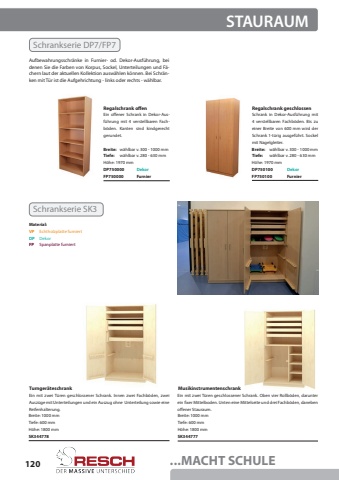 120...MACHT SCHULESTAURAUMTurnger%u00e4teschrankBreite: 1000 mmTiefe: 600 mmSK344778H%u00f6he: 1800 mmEin mit zwei T%u00fcren geschlossener Schrank. Innen zwei Fachb%u00f6den, zwei Ausz%u00fcge mit Unterteilungen und ein Auszug ohne Unterteilung sowie eine Reifenhalterung.MusikinstrumentenschrankBreite: 1000 mmTiefe: 600 mmSK344777H%u00f6he: 1800 mmEin mit zwei T%u00fcren geschlossener Schrank. Oben vier Rollb%u00f6den, darunter ein fixer Mittelboden. Unten eine Mittelseite und drei Fachb%u00f6den, daneben offener Stauraum.Material:DekorEchtholzplatte furniertSpanplatte furniertDPVPFPSchrankserie SK3Aufbewahrungsschr%u00e4nke in Furnier- od. Dekor-Ausf%u00fchrung, bei denen Sie die Farben von Korpus, Sockel, Unterteilungen und F%u00e4chern laut der aktuellen Kollektion ausw%u00e4hlen k%u00f6nnen. Bei Schr%u00e4nken mit T%u00fcr ist die Aufgehrichtung - links oder rechts - w%u00e4hlbar.FurnierFurnierDekorDekorSchrankserie DP7/FP7Regalschrank offenRegalschrank geschlossenEin offener Schrank in Dekor-Ausf%u00fchrung mit 4 verstellbaren Fachb%u00f6den. Kanten sind kindgerecht gerundet.Schrank in Dekor-Ausf%u00fchrung mit 4 verstellbaren Fachb%u00f6den. Bis zu einer Breite von 600 mm wird der Schrank 1-t%u00fcrig ausgef%u00fchrt. Sockel mit Nagelgleiter.FP750000DP750000FP750100DP750100w%u00e4hlbar v. 300 - 1000 mmw%u00e4hlbar v. 300 - 1000 mmw%u00e4hlbar v. 280 - 630 mmw%u00e4hlbar v. 280 - 630 mmH%u00f6he: 1970 mmH%u00f6he: 1970 mmBreite:Breite:Tiefe:Tiefe:
