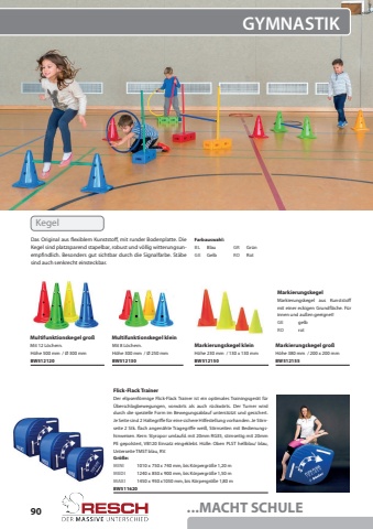 90...MACHT SCHULEGYMNASTIKMarkierungskegel kleinMultifunktionskegel gro%u00df MarkierungskegelMarkierungskegel gro%u00dfH%u00f6he 500 mm / %u00d8 300 mmH%u00f6he 230 mm / 130 x 130 mmGEgelbROrotH%u00f6he 380 mm / 200 x 200 mmMit 12 L%u00f6chern.Mit 8 L%u00f6chern.Das Original aus flexiblem Kunststoff, mit runder Bodenplatte. Die Kegel sind platzsparend stapelbar, robust und v%u00f6llig witterungsunempfindlich. Besonders gut sichtbar durch die Signalfarbe. St%u00e4be sind auch senkrecht einsteckbar.Markierungskegel aus Kunststoff mit einer eckigen Grundfl%u00e4che. F%u00fcr innen und au%u00dfen geeignet!BW512120BW512150BW512155Multifunktionskegel kleinH%u00f6he 300 mm / %u00d8 250 mmBW512130Farbauswahl:BLBlauGEGelbGRGr%u00fcnRORotGr%u00f6%u00dfe:MINI1010 x 750 x 740 mm, bis K%u00f6rpergr%u00f6%u00dfe 1,20 mMEDI1240 x 850 x 900 mm, bis K%u00f6rpergr%u00f6%u00dfe 1,50 mMAXI1450 x 950 x1050 mm, bis K%u00f6rpergr%u00f6%u00dfe 1,80 mFlick-Flack TrainerDer elipsenf%u00f6rmige Flick-Flack Trainer ist ein optimales Trainingsger%u00e4t f%u00fcr %u00dcberschlagbewegungen, vorw%u00e4rts als auch r%u00fcckw%u00e4rts. Der Turner wird durch die spezielle Form im Bewegungsablauf unterst%u00fctzt und gesichert. Je Seite sind 2 Haltegriffe f%u00fcr eine sichere Hilfestellung vorhanden. Je Stirnseite 2 Stk. flach angen%u00e4hte Tragegriffe wei%u00df, Stirnseiten mit Bedienungshinweisen. Kern: Styropor umlaufd. mit 20mm RG35, stirnseitig mit 20mm PE gepolstert, VB120 Einsatz eingeklebt. H%u00fclle: Oben PLST hellblau/ blau, Unterseite TMST blau, RV.BW511620Kegel