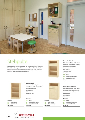 132StehpulteStehpult offenStehpult mit Lade/T%u00fcrStehpult mit LadeBreite: 600 mmBreite: 600 mmBreite: 600 mmSR331000SK331000SK331200SK331300DPDPDPVPVPVPFPFPFPSR331200Tiefe: 400 mmTiefe: 400 mmTiefe: 400 mmH%u00f6he: 1050 mmH%u00f6he: 1050 mmH%u00f6he: 1050 mmMit einem offenen Regal und zwei verstellbaren Fachb%u00f6den f%u00fcr Ordner oder dergleichen.Platzsparende Steh-Arbeitspl%u00e4tze f%u00fcr ein angenehmes Arbeiten. Materialausf%u00fchrung sowie Holzarten und Farben laut aktueller Kollektion w%u00e4hlbar. Griff und Schrankunterbau kann nach den vorgegebenen Varianten ausgew%u00e4hlt werden.DekorDekorDekorEchtholzplatte furniertEchtholzplatte furniertEchtholzplatte furniertSpanplatte furniertSpanplatte furniertSpanplatte furniertBUBUBIBIBuche massivBuche massivBirke massivBirke massivMit einem offenen Fach, einer Schublade sowie mit einer T%u00fcr geschlossenem Schrankfach.Mit einem offenen Fach, einer Schublade sowie einem zus%u00e4tzlichen, offenen Schrankfach. Material:Material:Material:Material:Material: