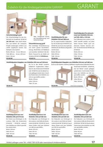 Einfach anfragen unter: Tel.: +43(0) 7281 6279 oder massiv@resch-kindermoebel.at17Stuhlfu%u00dfpodest fix vonSitzh%u00f6he 350 auf 260 mmStuhlfu%u00dfpodest klappbar von Sitzh%u00f6he 350 mm auf 220 mmStuhlfu%u00dfpodest klappbar von Sitzh%u00f6he 350 mm auf 260 mmStuhlfu%u00dfpodest lose von Sitzh%u00f6he 350 auf 260 mmStuhlfu%u00dfpodest lose von Sitzh%u00f6he 350 auf 310 mmStuhlfu%u00dfpodest lose von Sitzh%u00f6he 350 auf 220 mmStuhlfu%u00dfpodest lose von Sitzh%u00f6he 350 auf 260 mmStuhlfu%u00dfpodest fix mitwachsend von Sitzh%u00f6he 350 mm auf 220, 260 u. 310 mmSicherheitsb%u00fcgel gro%u00dfBreite: 335 mmBreite: 440 mmBreite: 292 mmSE160190SE160197SE160198SE160196SE160191SE160192SE160195SE160180SE160199Tiefe: 120 mmTiefe: 151 mmTiefe: 130 mmDetail: Podest hochgeklapptTiefe: 165 mmTiefe: 165 mmTiefe: 165 mmH%u00f6he: 90 mmH%u00f6he: 130 mmH%u00f6he: 90 mmH%u00f6he: 36 mmH%u00f6he: 90 mmH%u00f6he: 130 mmTiefe: 265 mmTiefe: 165 mmH%u00f6he: 90 mmH%u00f6he: 134 mmH%u00f6he: 128 mmTiefe: 280 mmBreite: 335 mmBreite: 278 mmBreite: 278 mmBreite: 339 mmBreite: 335 mmBreite: 335 mm (innen: 300 mm)Ein fix angeschraubtes Fu%u00dfpodest f%u00fcr den Kinderstuhl SE160100 und SE160120, durch das eine optimale Sitzh%u00f6he f%u00fcr die Kleinen hergestellt werden kann.Ein fix an den beiden vorderen Fu%u00dfbeinen angebrachtes Fu%u00dfpodest f%u00fcr den Kinderstuhl SE160100 oder SE160120, das bei Bedarf zur%u00fcck geklappt werden kann. Durch das Podest kann eine Sitzh%u00f6he von 220 mm geschaffen werden.Ein fix an den beiden vorderen Fu%u00dfbeinen angebrachtes Fu%u00dfpodest f%u00fcr den Ein Fu%u00dfpodest zum Einh%u00e4ngen in die vorderen zwei F%u00fc%u00dfe des Kinderstuhls SE160100 / SE160120. Durch dieses Podest wird eine Sitzh%u00f6he von 260 mm geschaffen.Ein Podest zum Einh%u00e4ngen in die vorderen F%u00fc%u00dfe des Kinderstuhls SE160100 / SE160120 wodurch eine Sitzh%u00f6he von 310mm geschaffen werden kann.Ein Fu%u00dfpodest zum Einh%u00e4ngen in die vorderen zwei F%u00fc%u00dfe der Kinderst%u00fchle SE160100 / SE160120. Durch dieses Podest wird eine Sitzh%u00f6he von 220 mm geschaffen.Ein Fu%u00dfpodest zum Einh%u00e4ngen in die vorderen F%u00fc%u00dfe des Kinderstuhls SE160100 / SE160120. Durch dieses Podest kann eine Sitzh%u00f6he von 260 mm geschaffen werden.Das Fu%u00dfpodest kann einfach in der H%u00f6he verstellt werden, auf diese Weise k%u00f6nnen St%u00fchle auch von kleineren Kindern benutzt werden. F%u00fcr Kinderstuhl SE160100 und SE160120. Der Sicherheitsb%u00fcgel f%u00fcr den Kinderstuhl mit Armlehnen SE160120 (SH 350 mm) kann durch Anziehen und Drehen der schwarzen Kn%u00f6pfe werkzeuglos entfernt und wieder angebracht werden. Aus Multiplex natur lackiert.(innen: 220 mm)Sitzverkleinerung gro%u00dfSE160170Eine dreiteilige Sitzverkleinerung mit einem gr%u00fcnen Kunstleder%u00fcberzug. Abnehmbar mit Klettband und waschbar. Verkleinert die Sitzfl%u00e4che. Passend f%u00fcr die St%u00fchle mit Armlehne SE160120 (SH350mm).Abb.: Kinderstuhl Garant mit Sitzverkleinerung und Sicherheitsb%u00fcgel.Zubeh%u00f6r f%u00fcr die Kindergartenst%u00fchle GARANTGARANTKinderstuhl SE160100 / SE160120, das bei Bedarf zur%u00fcck geklappt werden kann. Durch dieses Podest kann eine Sitzh%u00f6he von 260 mm geschaffen werden.