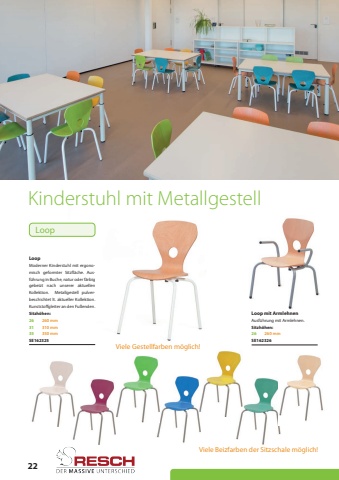 22Sitzh%u00f6hen:Sitzh%u00f6hen:26352631260 mm350 mm260 mm310 mmKinderstuhl mit MetallgestellLoopLoop mit ArmlehnenSE162325SE162326Moderner Kinderstuhl mit ergonomisch geformter Sitzfl%u00e4che. Ausf%u00fchrung in Buche, natur oder f%u00e4rbig gebeizt nach unserer aktuellen Kollektion. Metallgestell pulverbeschichtet lt. aktueller Kollektion. Kunststoffgleiter an den Fu%u00dfenden.Ausf%u00fchrung mit Armlehnen.Viele Beizfarben der Sitzschale m%u00f6glich!Viele Gestellfarben m%u00f6glich!Loop