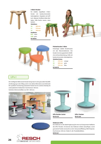 263-Bein-HockerPolsterhocker 3-Bein3521350 mm210 mmSE160561SE1605703131310 mm310 mm2626260 mm260 mmEin stabiler, stapelbarer 3-BeinHocker mit bodenschonenden Gelenkgleitern. Sitzplatte mit Griffloch. Material: Sitzfl%u00e4che Birke Multiplex, F%u00fc%u00dfe Buche massiv, natur lackiert.Dreieckiger stabiler Kinderhocker mit drei Massivholzbeinen. Der Hocker hat eine gepolsterte Sitzfl%u00e4che mit Kunstlederbezug. F%u00fc%u00dfe mit bodenschonenden Gelenkgleitern.Sitzh%u00f6hen:Sitzh%u00f6he/Farbe:GRNNATgr%u00fcnnaturorangegr%u00fcnblauSitzfl%u00e4che:UPis Hocker JuniorUPis1 HockerSE701225SE701220Der intelligente Mehrzweck-Hocker bringt durch seine gerundete Standfl%u00e4che Bewegung in den Alltag und ist eine aktive Alternative zum Drehstuhl. Der qualitativ hochwertig produzierte Hocker hat ein weiches Sitzinlay f%u00fcr unkomplizierten Sitzkomfort. Durchmesser: 330 mm.Stufenlos h%u00f6henverstellbar von 450 - 630 mm.Sitzkissen UPisSE701221Das Sitzkissen ist die ideale Erg%u00e4nzung f%u00fcr eine noch bequemere Sitzfl%u00e4che des UPis1-Hockers. Sie k%u00f6nnen das Sitzkissen einfach darauflegen, durch gummierte Punkte verrutscht es nicht. Schaumstofff%u00fcllung 100% Polyester. Durchmesser: 320 mm. Farben lt. akt. Produktkollektion.UPis1