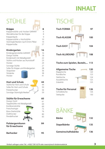Einfach anfragen unter: Tel.: +43(0) 7281 6279 oder massiv@resch-kindermoebel.at3INHALTST%u00dcHLEKrippe Krippenst%u00fchle und -hocker GARANTWendehocker f%u00fcr die KrippeKrippenbankKrippenst%u00fchle u. Hochst%u00fchleSitzm%u00f6glichkeiten nach Emmi PiklerKrippensofasKindergartenKindergartenst%u00fchle GARANTDesign St%u00fchle Kinderstuhl mit MetallgestellSt%u00fchle und Hocker aus Kunststoff HockerSonstige St%u00fchleSofas f%u00fcr Krippe und KindergartenSitzpolsterSitzs%u00e4ckeHockerHort und Schule St%u00fchle f%u00fcr Hort und SchuleSofas f%u00fcr Hort und SchulePolsterhockerSonstige Sitzm%u00f6glichkeitenSt%u00fchle f%u00fcr ErwachseneDesign StuhlStapelst%u00fchle mit MetallgestellKonferenzst%u00fchleFreischwinger B%u00fcro-Drehst%u00fchle DrehhockerPendelhockerPolstergarniturenf%u00fcr ErwachseneBarhocker6 6891014271616182223242728363841444450565960616469757680838495TISCHE Tisch FORMATisch KLASSIKTisch EASYTisch ALLROUNDTische zum Spielen, Basteln,...Allgemeine TischeKlapptischeRundtischeStehtischeAusziehtischeZubeh%u00f6rTische f%u00fcr PersonalSchreibtische StehpulteB%u00c4NKEB%u00e4nkeStapelb%u00e4nkeGemeinschaftsb%u00e4nke97100104108113120120123124125125126126130132135136