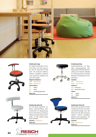 82Drehhocker Rota SitDrehhocker Flexi SitDrehhocker RotaSE701141SE701126SE701127Still zu sitzen war gestern! Der Multi-Drehhocker bei dem sich die R%u00fcckenlehne/Armauflage extra 360%u00b0 drehen l%u00e4sst. Mit silber/schwarzem Fu%u00dfkreuz, stufenlos verstellbarer Sitzh%u00f6he sowie gepolsterter Sitzfl%u00e4che und Lehne laut Vorgabe.GleiterGleiterAluminiumRollenRollenKunststoff schwarzLastabh%u00e4ngige RollenSitz und R%u00fccken gepolstert, stufenlose H%u00f6henverstellung durch Sicherheitslift mit Ringausl%u00f6sung, R%u00fccken-Rasterh%u00f6henverstellung, Fu%u00dfkreuz perlsilber, Rollen f%u00fcr Hartb%u00f6den, um 360%u00b0 drehbar, Bezug B1Q1 nach Wahl.Funktionsdrehhocker mit MaxiTeller, Bewegungsfreiheit 360%u00b0, Ringausl%u00f6ser, stufenlose H%u00f6henverstellung durch Gasfeder. Belastbar bis 120 kg, Bezug B1Q1 nach Wahl. Wahlweise 3D-Sitzkomfort mit Hebelausl%u00f6ser.SMAL400-500 mm370-500 mm420-530 mm535-730 mmSitzh%u00f6he:Sitzh%u00f6he:Sitzh%u00f6he:Drehhocker ErgoSE701120Der elegante Drehhocker mit Lehne f%u00fcr Klein und Gro%u00df sorgt daf%u00fcr, dass Sie ergonomisch richtig sitzen. Mit schwarzem Fu%u00dfkreuz, stufenlos verstellbaren Sitzh%u00f6hen sowie gepolsterter Sitzfl%u00e4che und Lehne laut Vorgabe.NIEDGLGLSTDALUROROhGas1KSTLRMEDI300-380 mm380-480 mmM%u00f6gliche Sitzh%u00f6hen:Gleiter/Rollen:Rollen:Fu%u00dfkreuz: